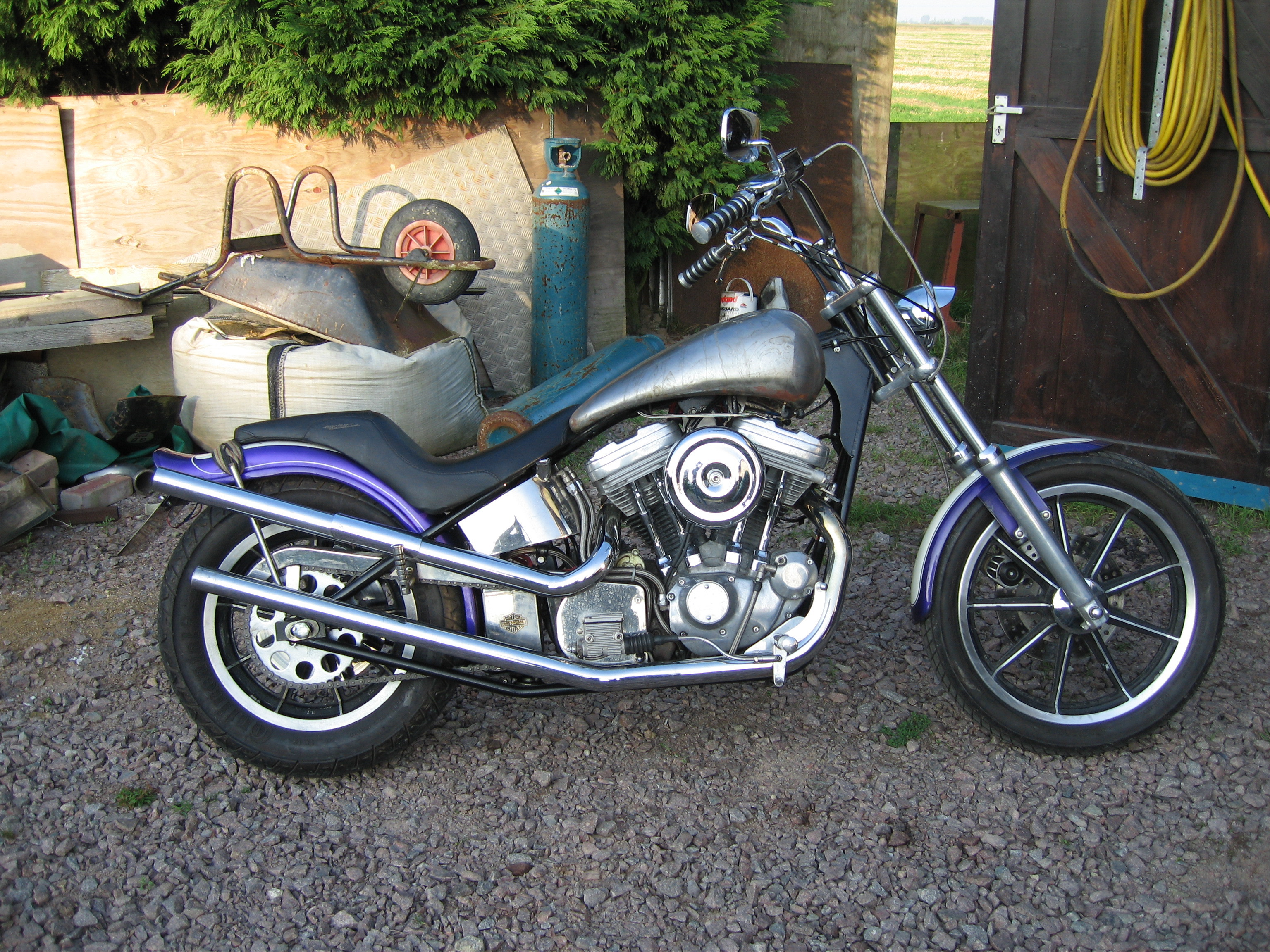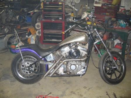 Started with a new fuel tank, seat, risers and bars.