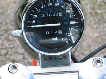 Speedo remounted and new idiot lights manufactured to blend in with the mount.