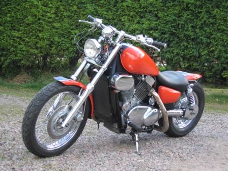 This now started the process of changing the overall look of the bike, the rear shocks were shortened and the seat and mudguard reworked to suit the new lower look.